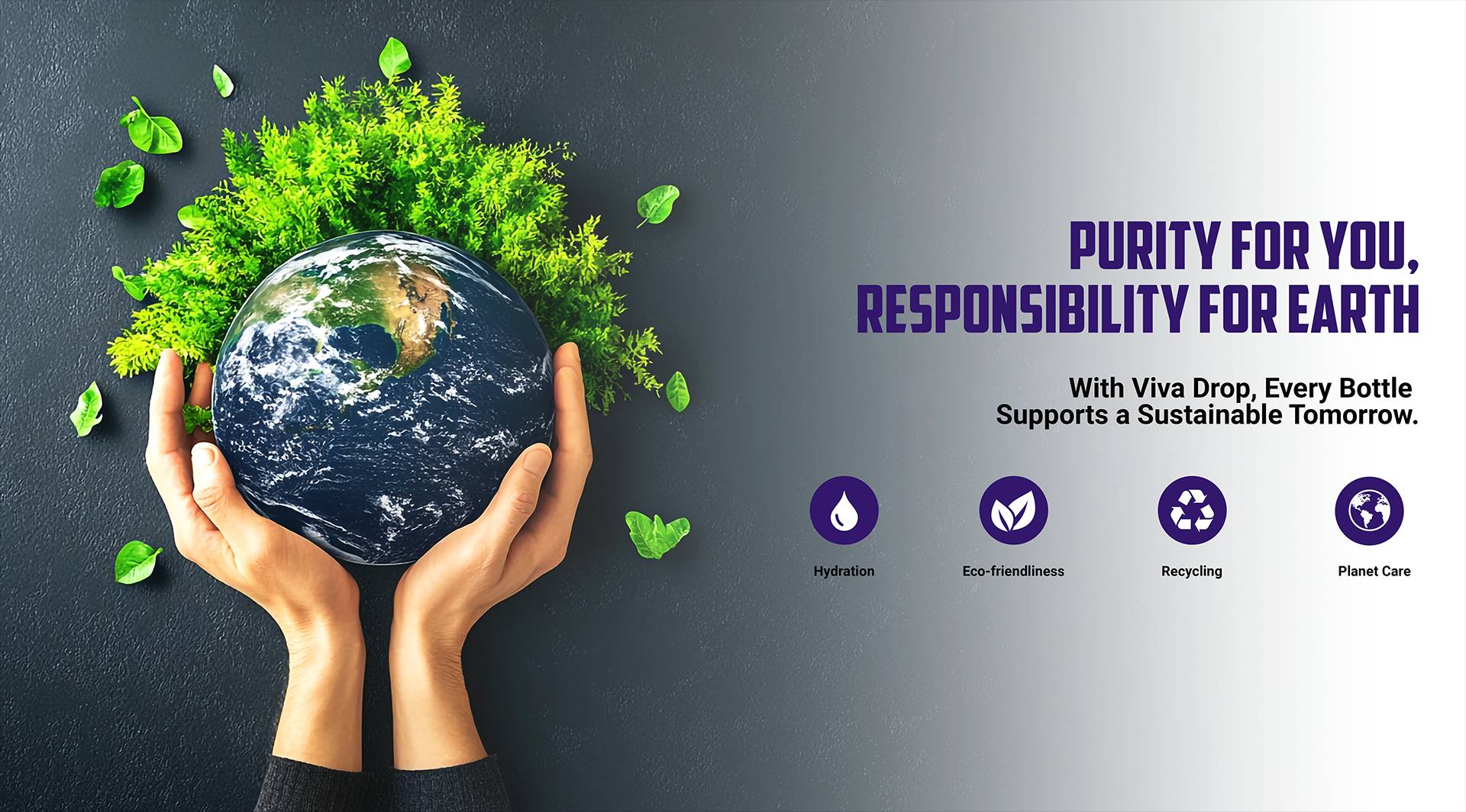 From supporting water conservation at the source, to using eco-friendly packaging, and empowering local communities, our sustainability journey is designed to ensure that every bottle of Viva Drop contributes to a healthier planet. We stand by our promise to safeguard the purity of water, the well-being of our people, and the health of the environment, because at Viva Drop, we believe — "When we care for every drop, we care for the world."